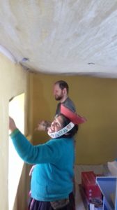 5) Marc, Barbara, Daniel areglan pintan, instalan electricidad, el local de huilloc, la oficina que sirve de recepcion de turismo y de educacion de la comunidad de Huilloc.