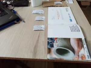 17) Las 1100 ceramicas estan realizadas por Betty, listas y les llevamos con cuidado en Huilloc, el 05/12 en camioneta, para entregarles a los 35 miembros.