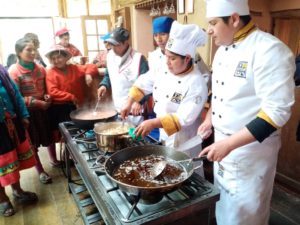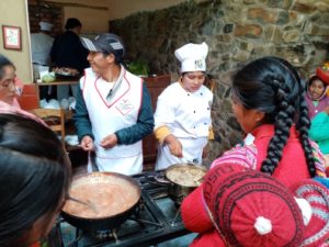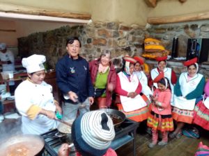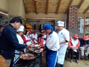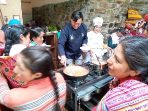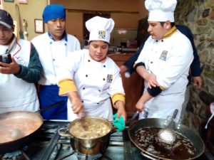 19) El profesor de gastronomia de la universidad, dio 5 dias de capacitacion en gastronomia novo andino, es decir acomodando con recetas nuevas, los productos locales de la comunidad, productos de los 35 socios.3 de sus alumnos participaron.